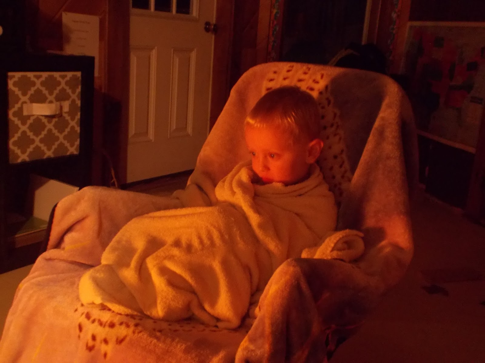 Big Boy in my rocking chair by the stove last night after his bath. All snugly!